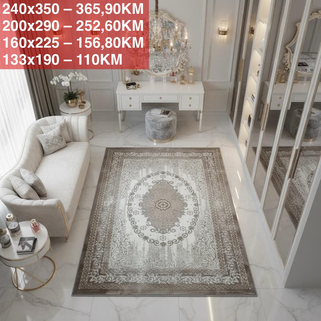 Ovaj tepih se izdvaja svojim prelepim i pažljivo osmišljenim dezenom, koji odmah privlači pažnju i unosi osećaj topline i elegancije. Kombinacija modernih i klasičnih šara daje mu bezvremenski izgled, zbog čega se lako uklapa uz različite stilove enterijera.