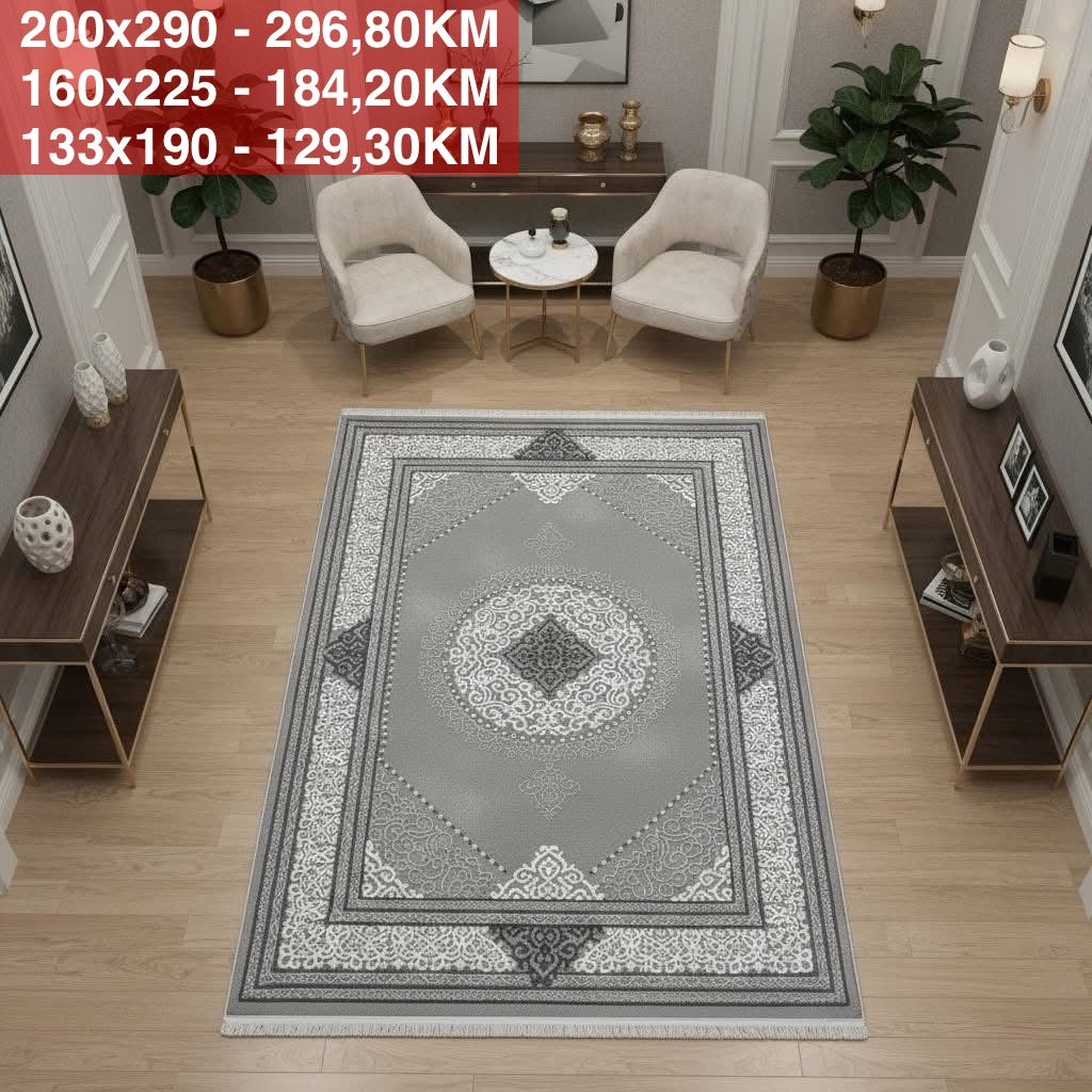Posebna pažnja posvećena je detaljima i završnoj obradi, što ovom tepihu daje sofisticiran i uredan izgled. Lako se održava i zadržava sve svoje estetske i praktične prednosti, čineći ga pouzdanim izborom za one koji žele kvalitetan i vizuelno upečatljiv proizvod.